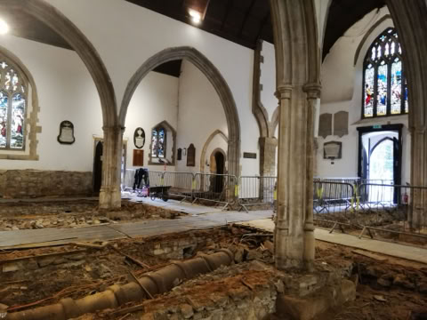 A labyrinth contains a single walking path to the centre and out again. The spiritual journey involves releasing distractions on the way in, receiving spiritual guidance in the centre and leaving with a renewed sense of purpose. The installation of the labyrinth as part of St. Cadoc’s refurbishment reminds us that we are all pilgrims on a journey of faith, with Christ at the centre.